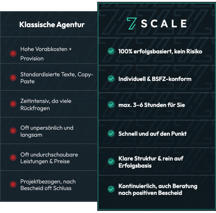 Nur wenn Sie einen positiven Bescheid erhalten, wird unser Honorar fällig. Kein Risiko für Sie.